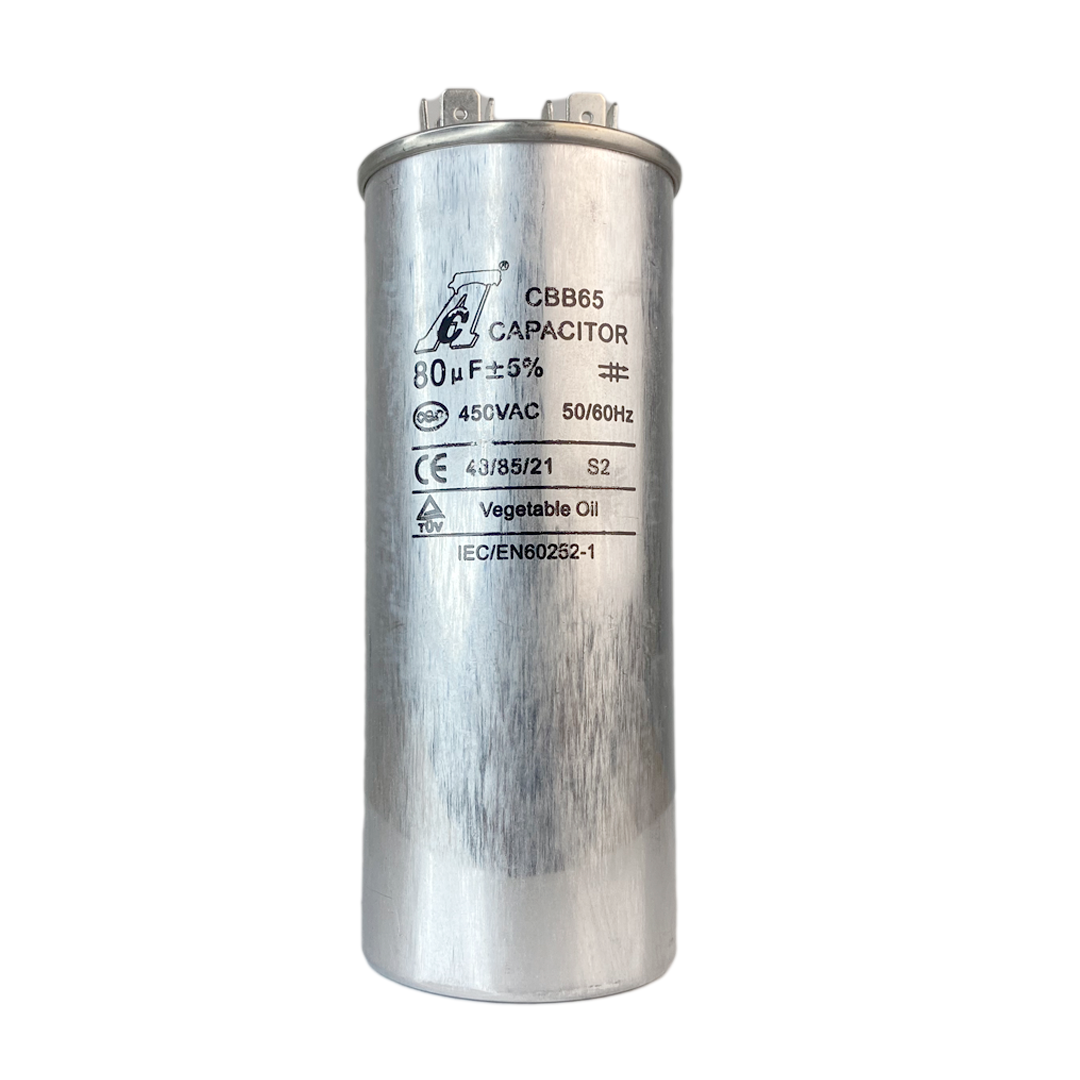 El capacitor CBB65-1 370/400VAC metálico 80 UF ofrece una capacidad superior para mantener motores funcionando de manera estable y eficiente en equipos de refrigeración o aire acondicionado.