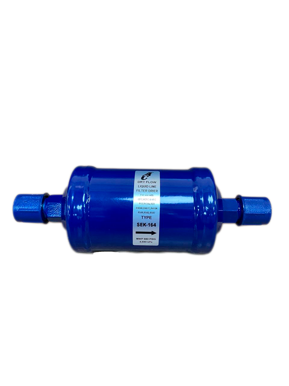 Filtro secador SEK-164 con conexión 1/2 tipo roscar y núcleo sólido, elimina humedad y residuos sólidos en instalaciones de aire acondicionado y refrigeración de mayor capacidad.