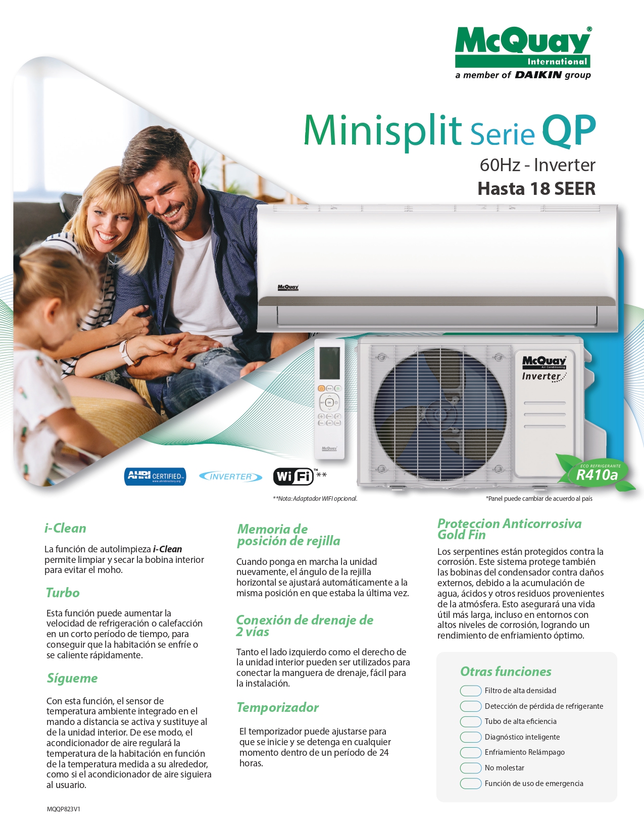 El Mini Split de 12.000 BTU 110V R-410A Inverter Marca McQuay es la solución ideal para climatizar tu hogar u oficina con eficiencia y confort.